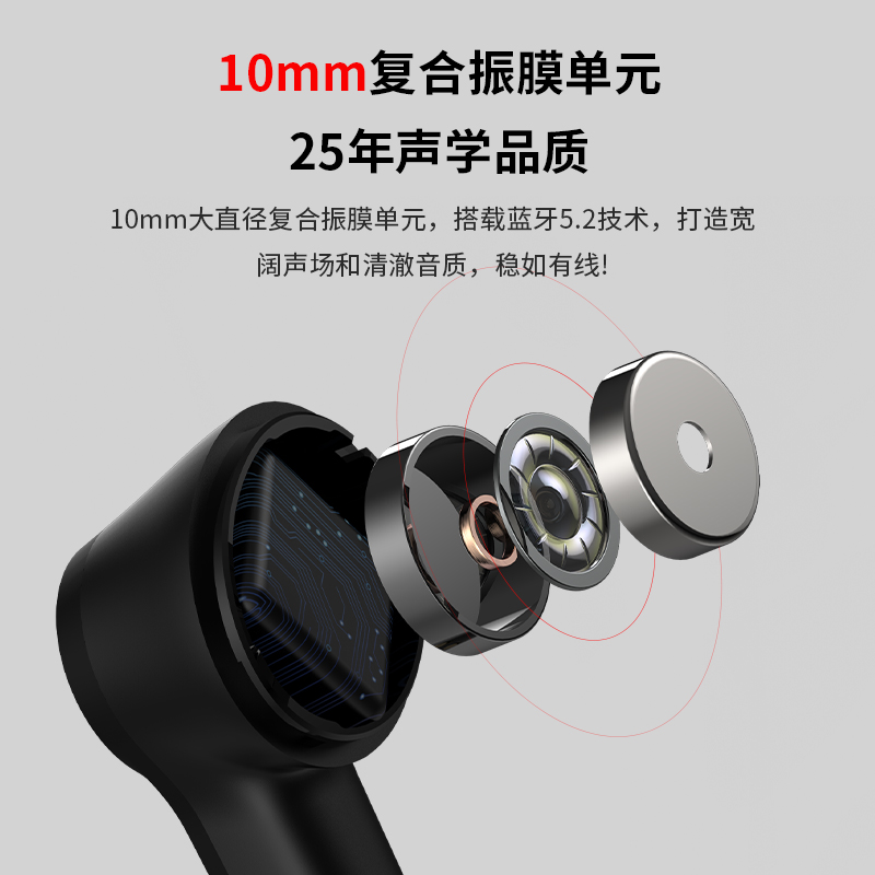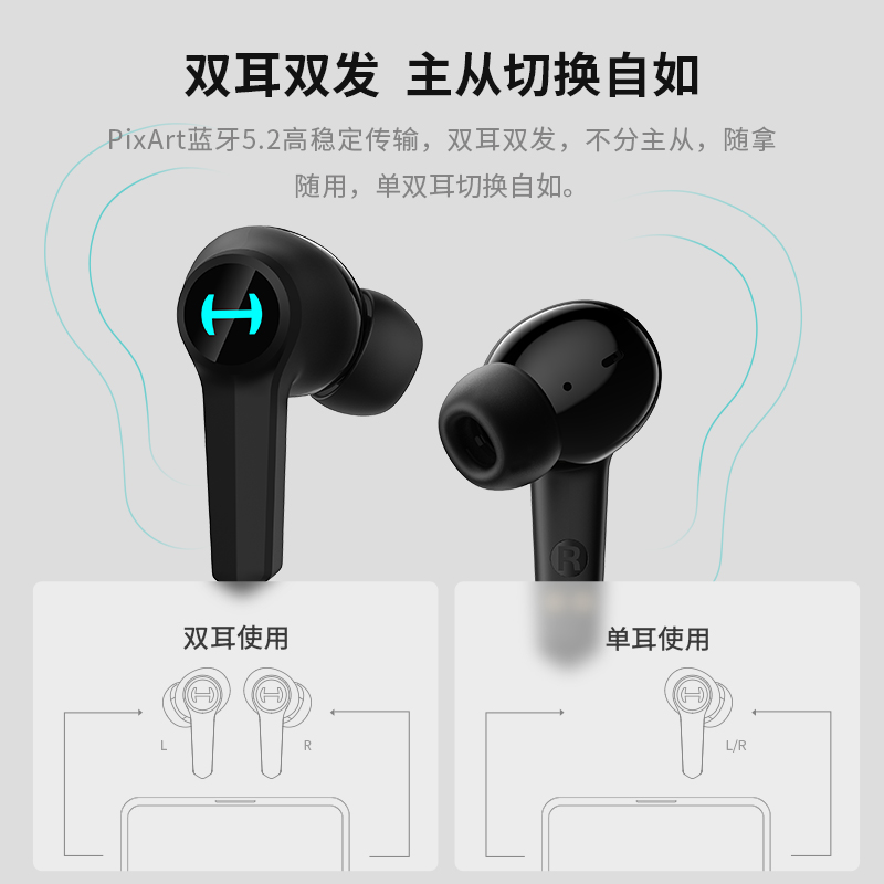 漫步者25年声学技术沉淀,携手 Pixart手游专属芯片研究院,致力于为游戏玩家提供高性能与优音质的游戏声学解决方案,共同构筑通往游戏梦境的未来之门。率先采用强力核“芯”- PAU1901专业手游芯片,搭配蓝牙5.2传输技术,在畅享60ms无感延时的同时,极大提升通话灵敏度与连接的稳定性,无论是地铁通勤,还是嘈杂室内,流畅体验无断连。Pixart手游芯片创始人彭博士与漫步者声学实验室为玩家 精密特调专属的游戏音效,低频脚步声加强,高音辅助加强枪声,听声辨位,快人一步。震撼环绕声场,犹如身临现场。10mm大直径复合振膜单元,搭载最新蓝牙5.2技术,打 造宽阔声场和清澈音质,稳如有线。通过三击任一耳机即可便捷切换两种模式,解锁多种新奇玩法,使您快速进入战场大显身手。