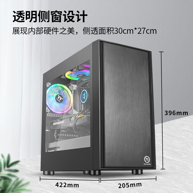启航者F1是TT出品的基本款侧透MATX机箱,整体简洁大方,黑色的钢板搭配中规中矩的四四方造型相当冷艳。在规格上,其支持MATX主板,拥有独立电源仓,支持背线,侧透,钢板0.6mm。2个USB3.0接口+2个USB2.0接口,3.5寸、2.5寸硬盘均有独立硬盘座,可使用长显卡,对于想组建matx入门系统的朋友来是个相当好的选择。套装中的电源型号为TR2-600,额定功率500W。