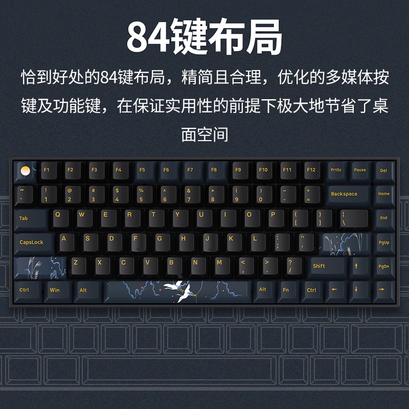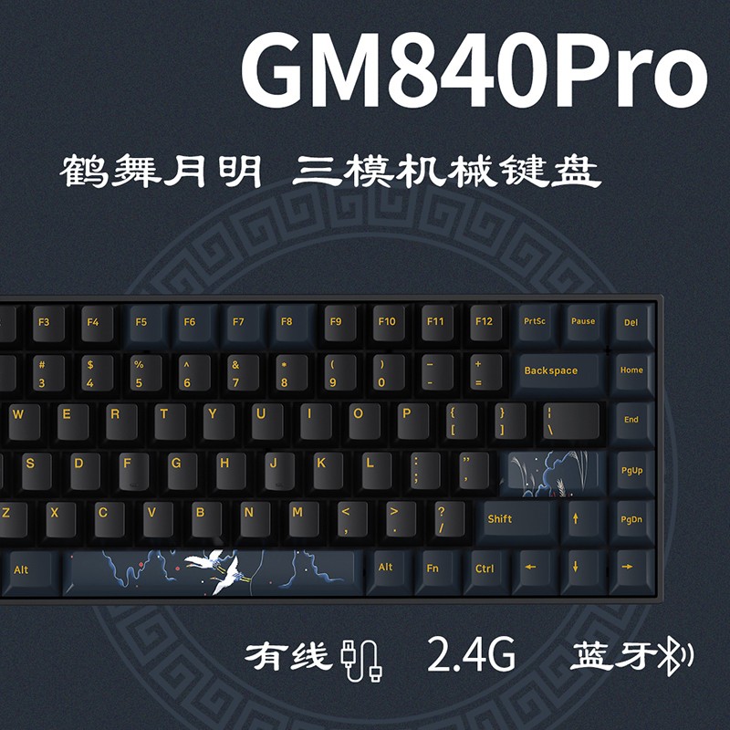 新贵 GM840Pro采用84键精简布局,紧凑合理优化的功能按键,保证实用性的前提下,节省桌面空间整体结构,简洁利落。三种连接模式支持无线蓝牙连接、USB有线连接、无线24G三模连接方式,支持多种设备使用,便于多设备无缝切换使用。