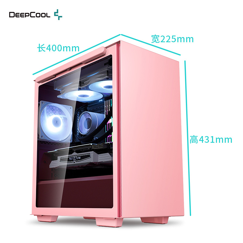 魔方110 磁吸式电脑机箱 粉红色 ,箱体长宽高(mm),400×225×431mm。设有3秒速装磁吸侧板,70度防跌落卡槽保护+侧板无螺丝孔,支持280规格以下水冷安装,内设有六个散热风扇位,支持MicroATX ,Mini-lTX主板。面板接口有USB3.0×2、Audio/Mic×1,机箱内装有便捷显卡支架,可根据显卡上下调节。有磁吸防尘滤网,可水洗,可保持机箱干净整洁,机身采用spcc冷轧钢烤潻工艺,结实更耐用。