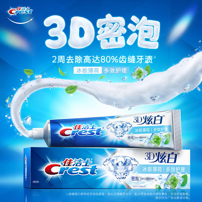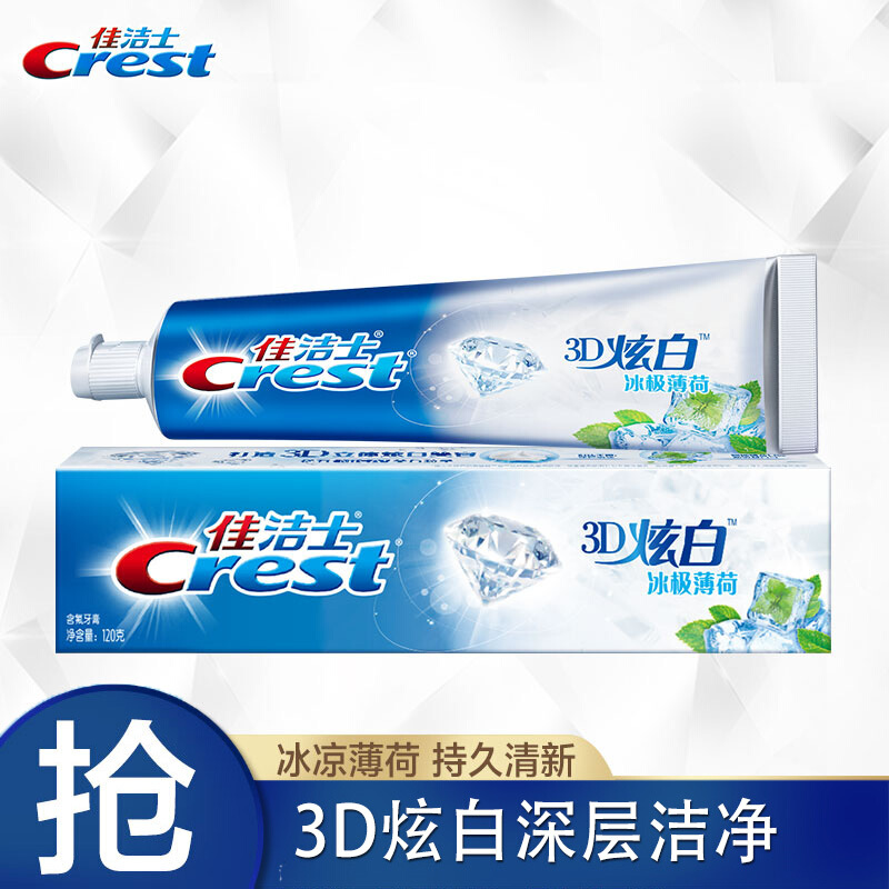 当前的位置: 首页 > 今日值得买 > 佳洁士牙膏美白3D炫白冰极薄荷牙膏120g 防蛀 含氟牙膏淡黄 清新口气
