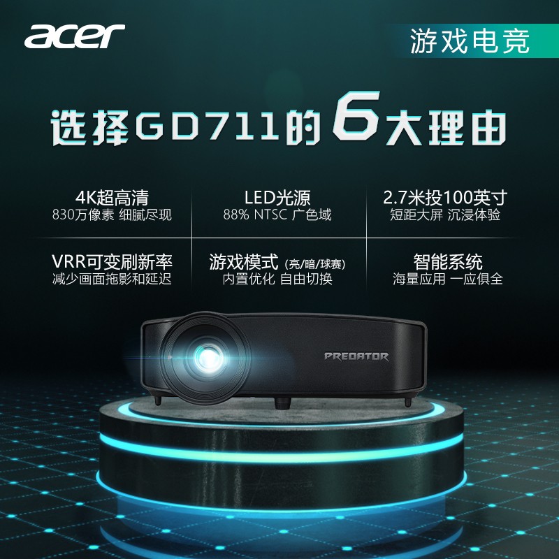 搭载TI XPR技术,显示完整的830万有效像素,配合1450ANS流明亮度,全天游戏观影无压力。88%NTSC广色域,相比普通投影有更高的色彩饱和度,2,000,0001对比度,提供自然有活力的图像表现,HDR10支持呈现每一束光线的细腻变化。支持VRR可变刷新率,减少运动图像的拖影和延迟,在1080P分辨率下可以提供更高的刷新率,来改善游戏体验。
