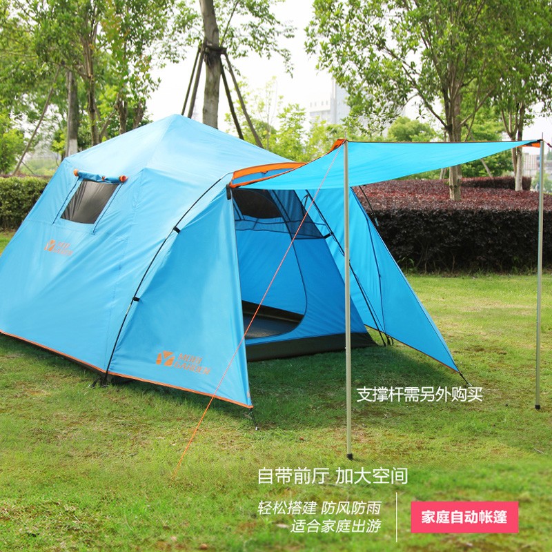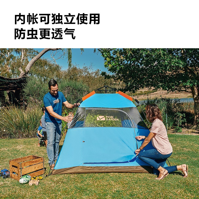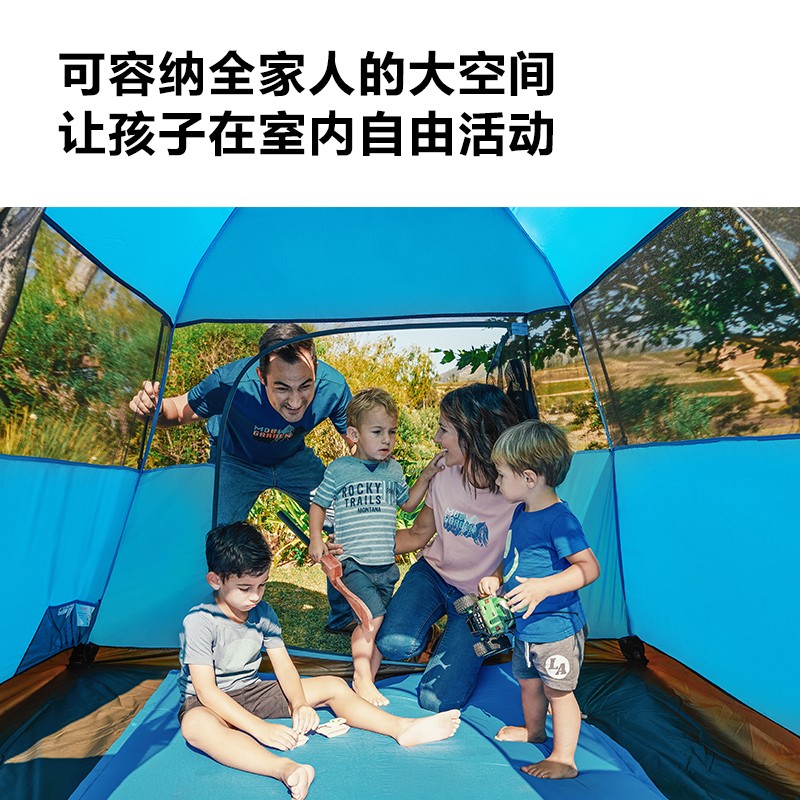 伞形折叠设计,方便简单又快捷,收纳打开一步到位,一个人皆可轻松完成;底脚连接,地钉插入底脚可固定帐篷,更加牢固稳定;挂扣设计搭建更方便,简单;防风绳固定拉绊,稳定帐篷,有效组织风沙天气带来的晃动;专业防水压胶,增强防雨水效果。
