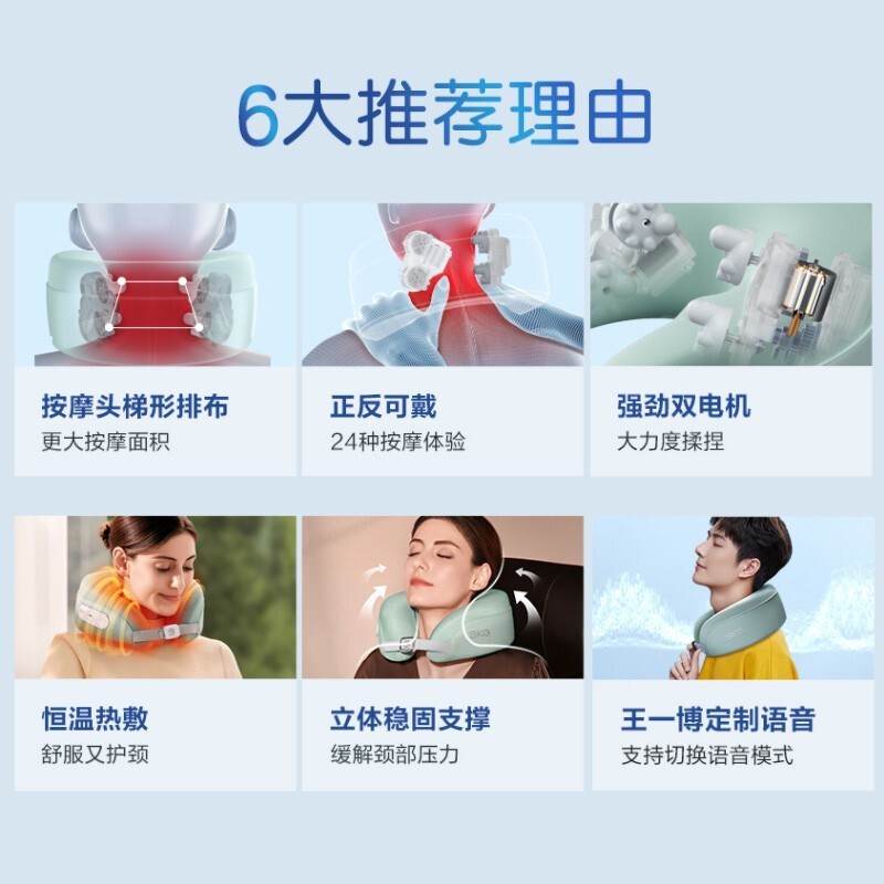 独特梯形按摩区设计,可正反戴交替按摩,按摩面积再提升,能按到脖子更多穴位,直击酸胀点。机身自带4种按摩模式,还有3档力度可以调节,反戴后可享受多达24种组合体验,每一种按摩组合都有全新感受。