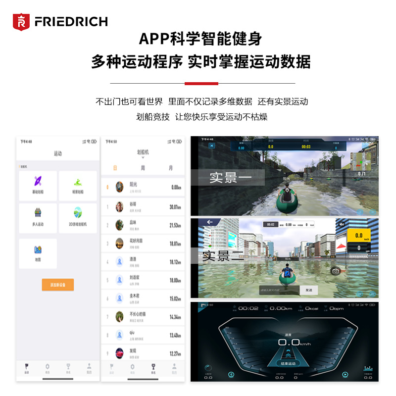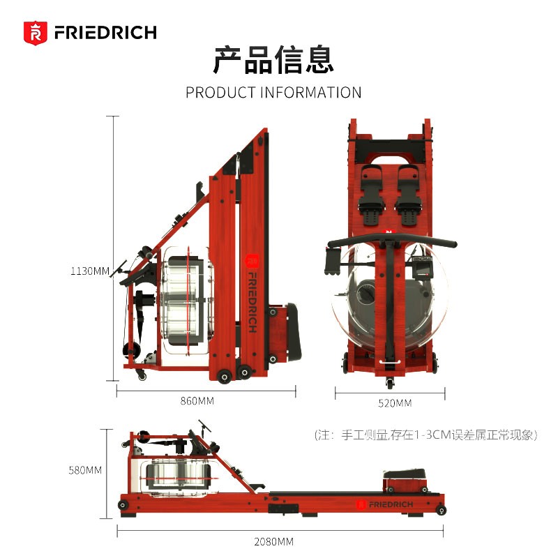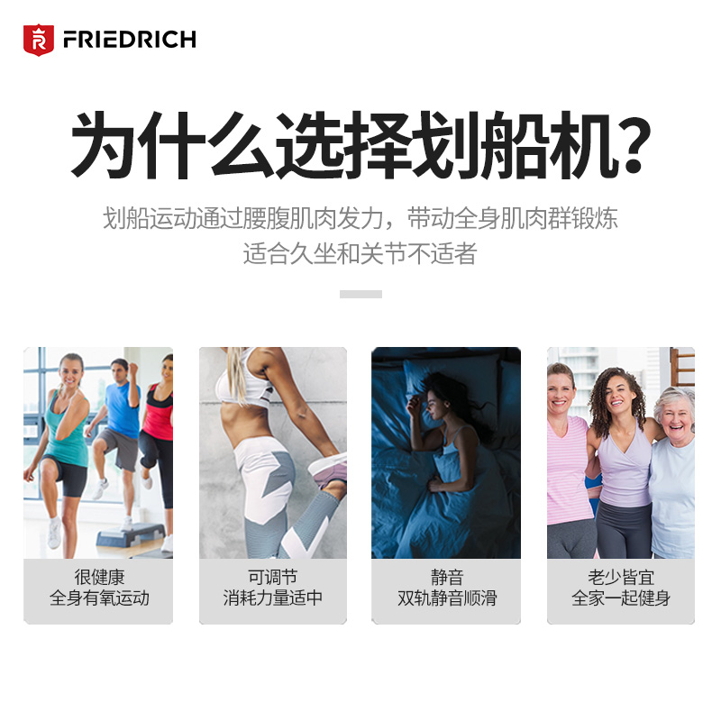 进口白蜡木,六档可调。精选良材,整机采用进口白蜡木,天然健康,坚韧耐腐,不易变形。单轴双蝶折叠,更稳固耐用。铝合金双轨道,更稳定顺滑,耐用性好且减少对机器损耗,静音效果更佳。环抱封闭水箱,无惧漏水。航空级聚碳酸酯水箱,欧洲八项认证,智能APP,简单方便,双支架设计,运动娱乐两不误。可锻炼全身84%的肌肉。一秒折叠,轻松收纳,占地0.5平方米。可承重200KG,老少皆宜。