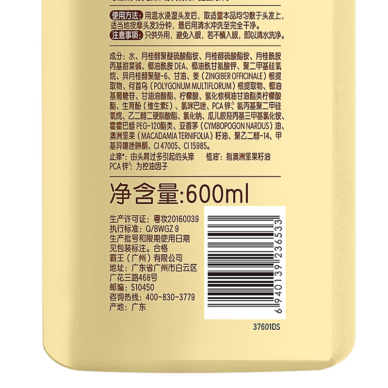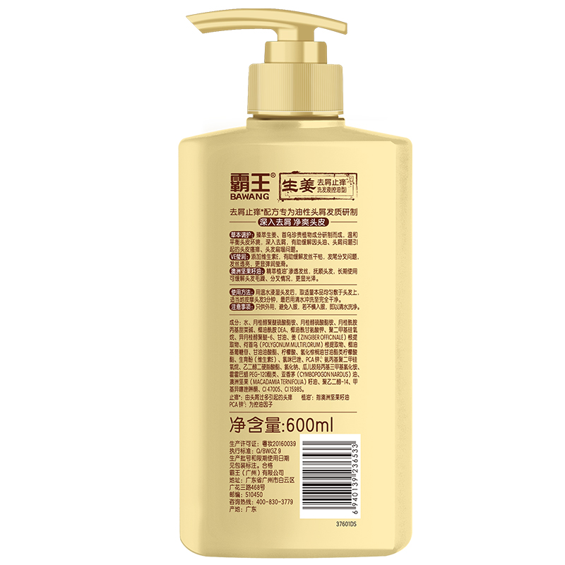 霸王生姜洗发液主要成分有澳洲坚果籽油,精萃植油渗透发丝,抚顺头发毛躁、分叉,滋养光泽。草本调护臻萃生姜、首乌珍贵植物成分,控油去屑缓解头皮瘙痒问题。VE盈润,添加维生素E,呵护发丝干枯分叉问题,更显弹润~