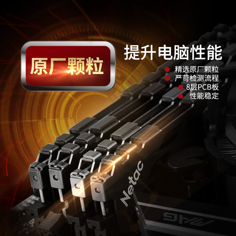 朗科 越影系列 DDR4 3200频 台式机内存条时序19-20-20-40,电压1.35V。精选原厂颗粒,严苛检测流程,8层PCB板,提升电脑性能。铝合金马甲,散热效果强,工作温度低,运行更稳定。镀金工艺,使导电性能与耐腐蚀性能更强。