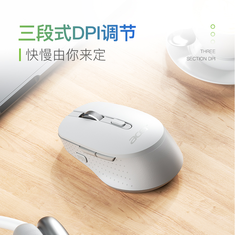 宏碁M155无线双模鼠标人体工程学设计,亲肤手感,曲面外形对称设计,更加贴合手部曲线,长时间使用依旧舒适。采用蓝牙3.0/5.0、无线三模传输技术,无需适配器提供更高效率更省电,随心切换连接方式,享受时尚办公。内置大容量150mAh锂电池。1次充电可使用数周。三段式DPI调节,DPI自由切换,反应灵敏。