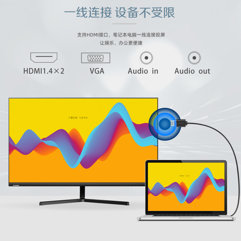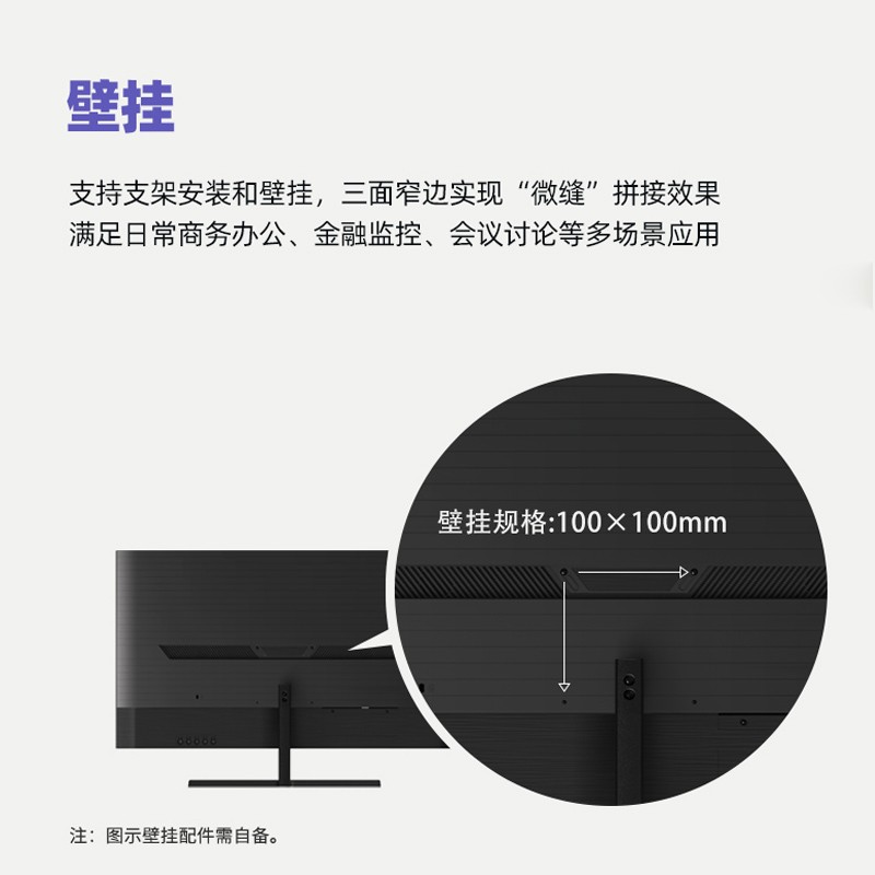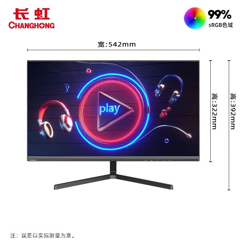 长虹24P820F显示器内置影音级音箱,音质纯正,采用双喇叭设计,呈现立体环绕音效,双HDMI配置,同时兼容机顶盒、游戏机、笔记本、主机等多种设备连接,拥有FHD 1080P高清分辨率,色域100%SRGB,精准把控图像细节,1670万种显示色彩,微边全面屏,23.8英寸,低蓝光不闪屏,178°广视角,支持支架安装和壁挂,三面窄边实现“微缝"拼接效果。