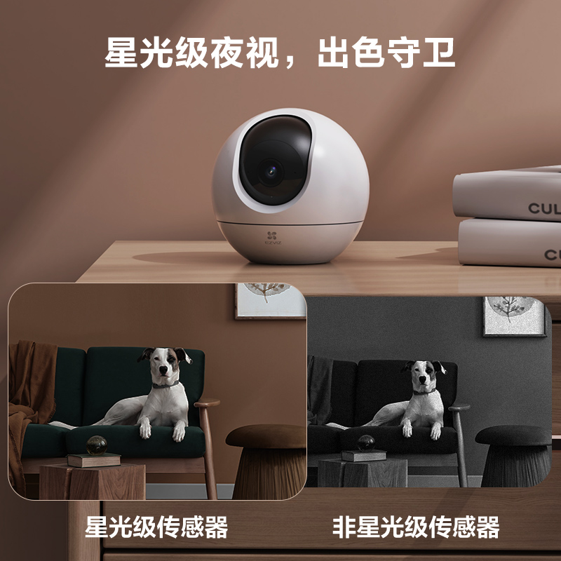萤石这款C6c 2K星光版智能云台摄像头,配置300万像素,星光级传感器进一步提升感光性能,分辨率最高可达2560x1440P,画质更细腻;搭配智能降噪算法,画面无噪点,更自然、更真实。水平旋转角度可达340°,可视角度可达360°,垂直旋转角度可达130°。步进式电机设计,旋转更稳定。满足多角度观察需求。搭载两颗LED红外灯,夜间照射可达10米,搭配两颗850nm红外补光灯,有效提升夜间画面清晰度。多种AI智能检测,自动捕捉其运动轨迹追踪跟拍。