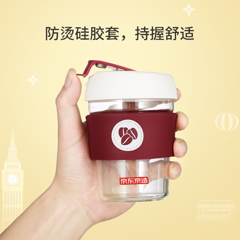 京东京造 X COSTA COFFEE 联名款随手咖啡杯,使用精致的木槿紫色搭配COSTA与京东京造的logo,整体设计时尚有型,杯体材质采用不含铅的高硼硅玻璃,可以承受-20℃~150℃的温度,周身使用罗马柱纹理的防烫硅胶套,握感舒适不烫手,不易爆裂,耐酸耐碱性能稳定。杯盖内部采用食品级接触封水圈和封水塞,可以全方位防漏,杯盖外部使用了磨砂处理,细腻耐摩擦,放入包包也能安心出行。除此之外,盖口还设有三角形饮口,掀开杯盖即可直饮,非常方便。杯子全身可拆洗,易清洁,杯身容量为365ml,重量为245g。为了保护环境减少使用纸杯数量,请带上随行杯,一起为环保助力。