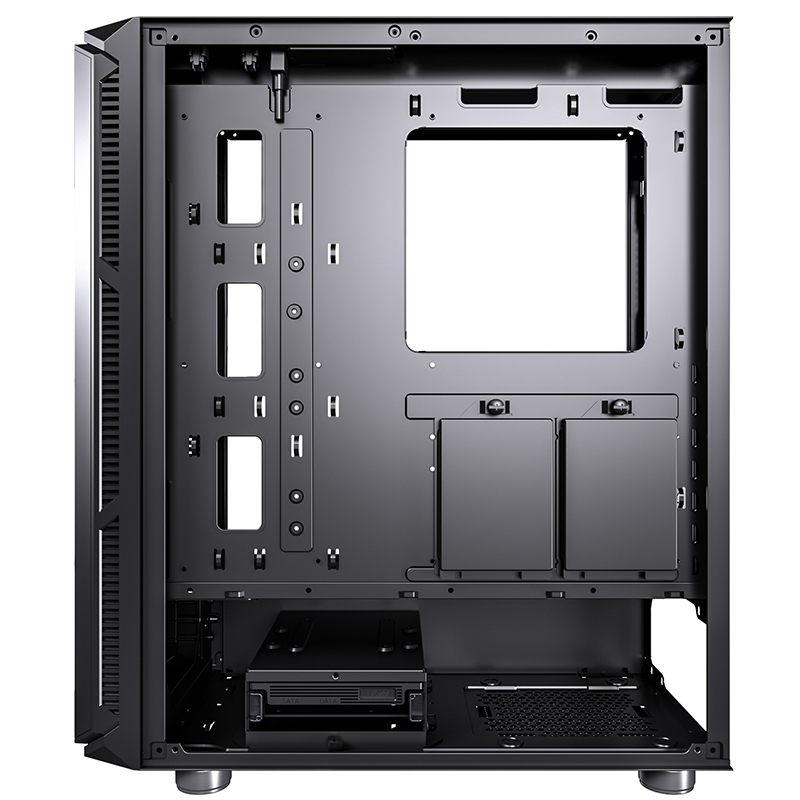 黑曼巴 F1支持EATX/ATX/MATX/ITX主板,CPU散热器现高160mm,显卡限长340mm,电源限长140mm,前板3*120mm风扇位,后板1*120mm风扇位,支持360mm水冷,标配3把风扇,配备2*HHD、4*SSD共6个风扇位,前板侧面进风,前部、两侧、顶部环绕静音棉,尺寸为478*407*210mm。
