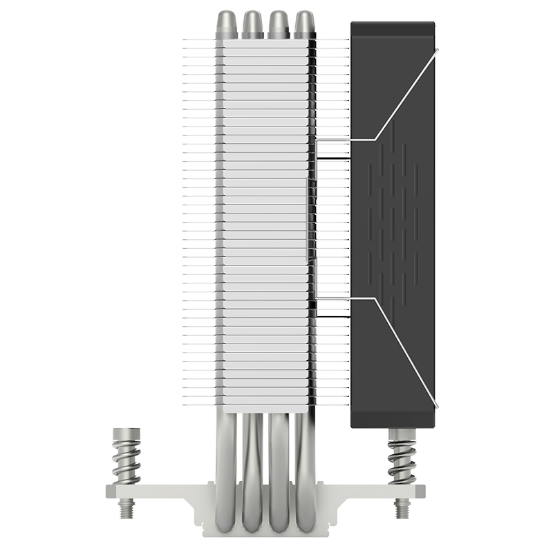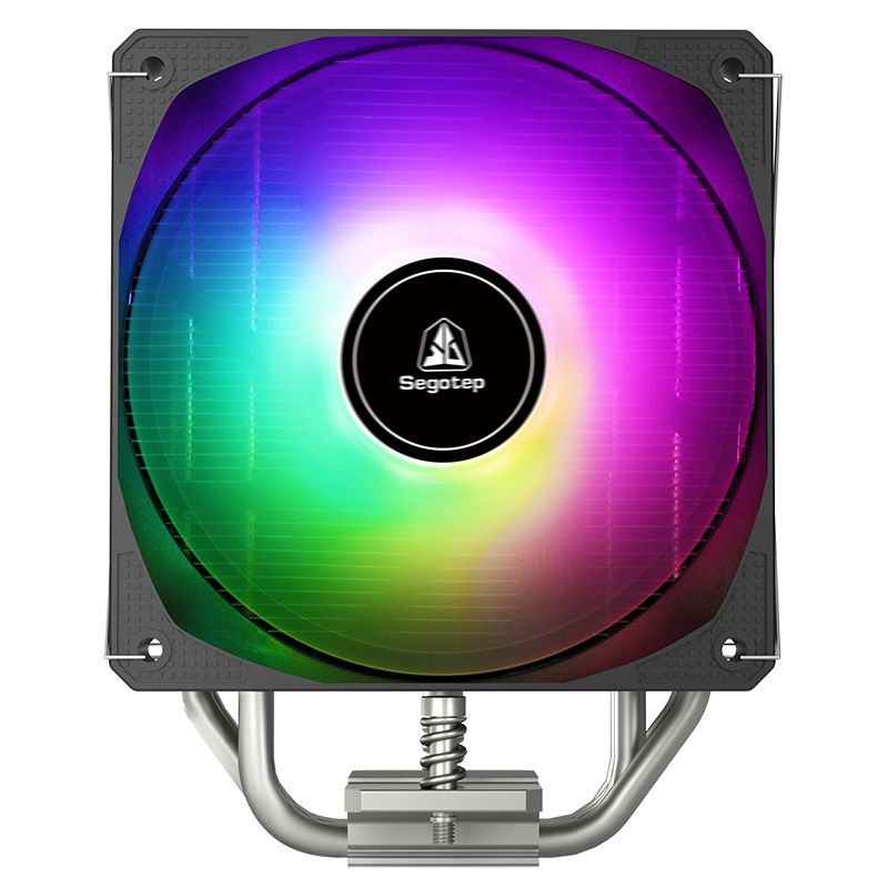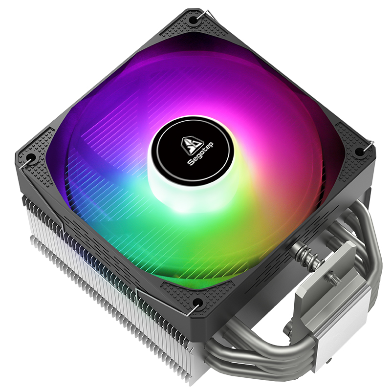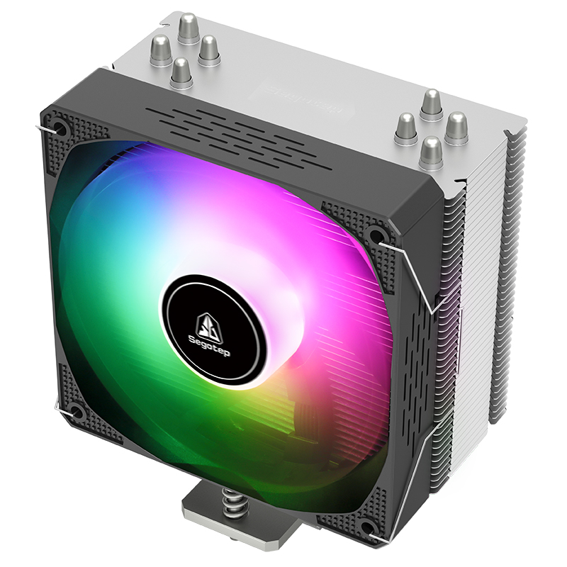 这款散热器搭载AGHP逆重力热管,使用高性能热管,使用纯铜镀镍,可后效防止热管氧化,U星结构导热能效加倍,单管TDP45W,有效解决积热;底座采用回流焊工艺,通过物理有效全接触散热,能将CPU热量迅速传递到热管,导热散热一触即发。使用精工微凸镀镍铜底,微凸表面使接触压力更大,CPU接触面积打12.6c㎡,散热更迅速。使用4mm加厚型材铝座,保证高压不变形的同时高效能散热,加粗M4芽弹簧螺丝,压力通过金属环型扣具向四角延伸,确保散热器与CPU之间严丝合缝。环形扣具四边定位孔设计,解决了传统风冷散热风向单一的痛点,玩家可根据需求自由选择风道吹向。标配120mm双发光模式风扇,支持A/I双平台。