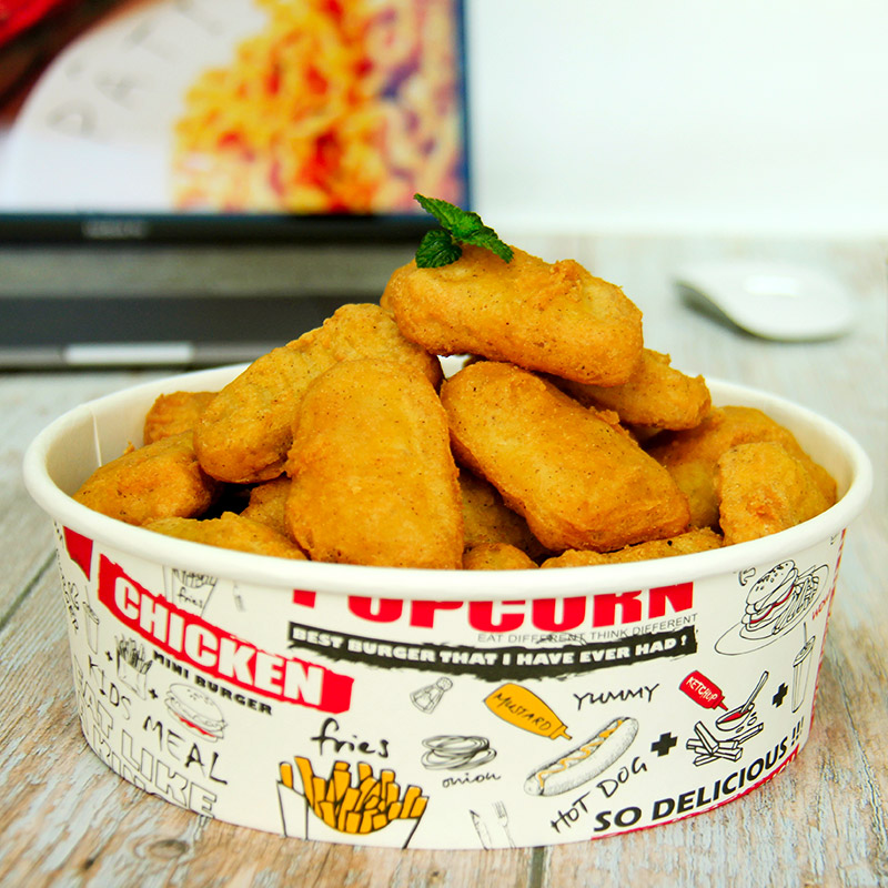 鸡块中加入马铃薯粉,口感更丰富,肉质饱满弹嫩,块块脆爽过瘾,芯肉含量高于60%,规格:900g。