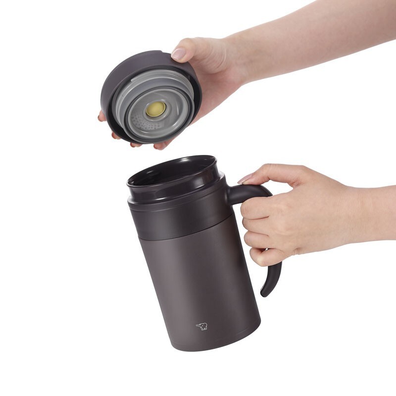 象印 SE—KAE48C 不锈钢保温茶杯,一杯茶一刻惬意,品茶求滋味浓淡总皆宜。保温杯瓶口宽6cm,人性化把手设计,手感舒适,拿放自如。不锈钢研磨镜面内胆,光滑有质感,不易沾污垢和异味,方便清洗。树脂饮水口,不易磨损,不易刮伤。独立茶仓设计,可过滤茶渣,调节茶汤浓度。象印的烤漆技术,做工严谨,手感舒适,不易褪色掉漆。注意事项:PP材质部件(例:杯盖、壶盖、吸管等)不能用高温水烫、煮等,避免变形损坏。容量:480ml;尺寸:12.5*9*16cm。