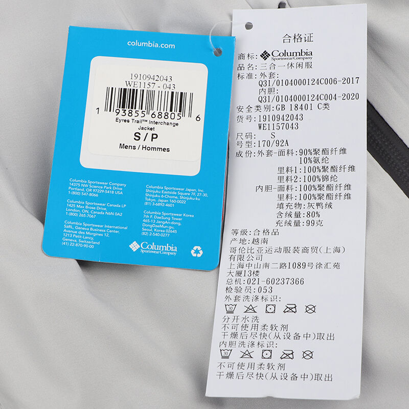 Columbia 哥伦比亚 男款户外三合一冲锋衣 WE1520,男款防水羽绒三合一冲锋衣、全线缝压胶防水、羽绒内胆、腋下透气系统、奥米热能反射技术、防水技术、650蓬鸭绒羽绒内胆设计,保障舒适保暖的同时不易跑绒。