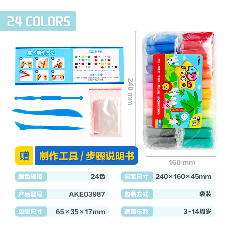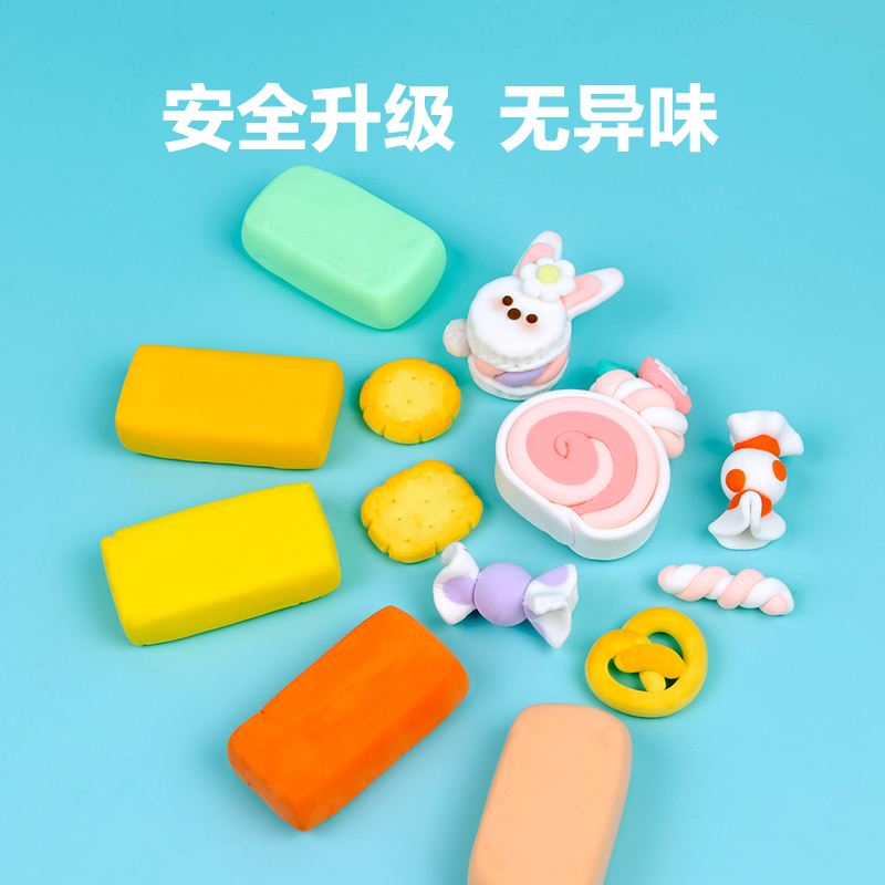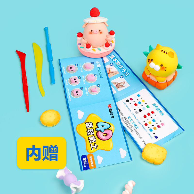 晨光4D超清粘土,超轻发泡材质,手感细腻,拉伸力强,真空包装杜绝干硬。包装内含简易工具及小包装袋,方便孩子使用。