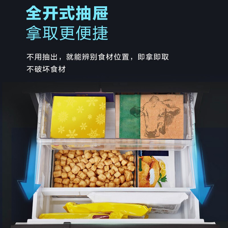 松下(Panasonic)这款型号为NR-JE43WXB-H的多门冰箱,其采用了传统的日式多门设计,因此拥有多个存储分区,包括:“202L冷藏室、84L冷冻室、17L制冰室、24L新鲜冷冻室、13L变温室、95L果蔬室”,总容积高达435L容量,满足日常多样存储需求。风冷无霜,顶置压缩机设计可提高空间利用率,让底部抽屉存放更多食材;支持-3℃微冻保鲜技术,可让食材保持在将冻未冻的状态,既新鲜又易切;果蔬室还采用透湿保鲜滤网装置,存放水果时放置水分流失;此外还有自动制冰的功能。全平面玻璃门设计,拉丝效果处理提升档次。综合耗电量0.92kW·h/24h,二级能效。