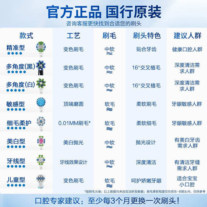 OralB 欧乐B EB60 电动牙刷头,0.01mm超细刷毛,深入清洁难刷部位,深入牙龈沟的同时,柔护牙龈刷,给口腔舒适的按摩。包裹式设计,可以淡化部分牙龈斑。磨圆刷毛,刚柔并济,呵护牙龈。 适用型号:博朗iBrush9000 Plus;博朗4000 3D D20.525.4X;博朗D16.523U;博朗D12013;博朗2000 3D D20.524.2M;博朗P2000;博朗D12;博朗P2000粉色;博朗D16+;博朗P2000蓝星战限量;博朗P5000 白色;博朗P5000 黑色;博朗iBrush8000 3D;博朗P8000;博朗OC20;博朗P6500 白色;博朗P6500 黑色;博朗DB4510;博朗iBrush9000;博朗欧乐B D36.545.6X