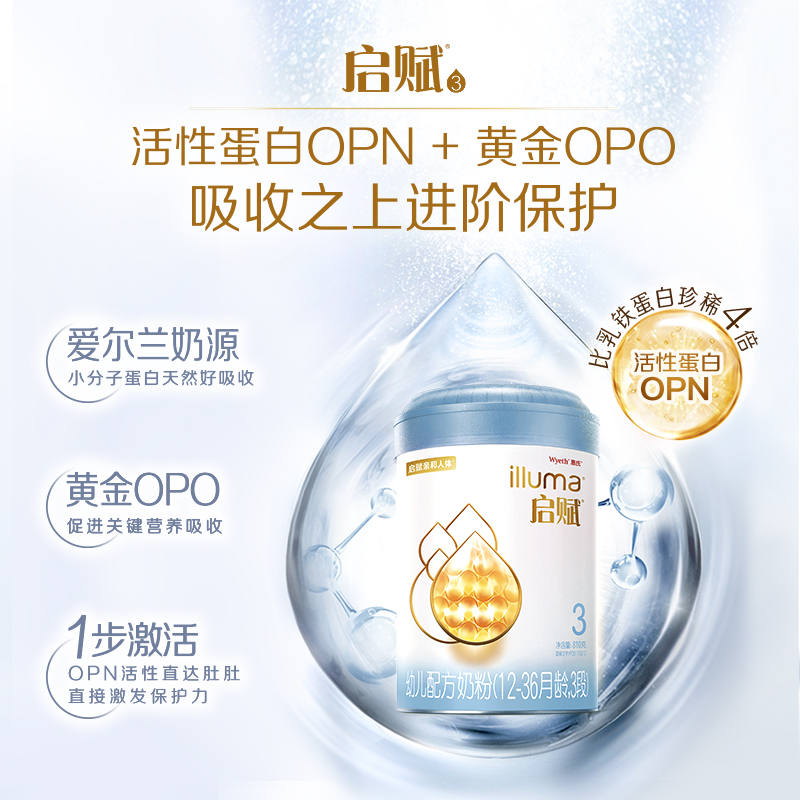 奶粉富含乳源活性因子,可以亲和人体的活性营养,蕴含有神奇的力量,可以扮演宝宝肚子的吸铁石,帮助宝宝构建自然的微生态,帮助宝宝提升保护力。创新精密盖,能够保鲜。贴心易拉膜,安心不伤手。亲和人体配方,自然贴合宝宝每一步成长所需,帮助支持宝宝体格、骨骼、头脑、免疫和吸收五大成长原动力。3段奶粉适合1-3岁宝宝,满足宝宝成长所需营养。