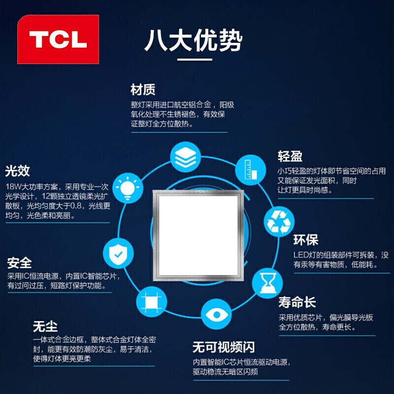更大功率,大功率方案,更易清洁,防油污一抹净,更严密设计,边框与灯体严丝合缝。