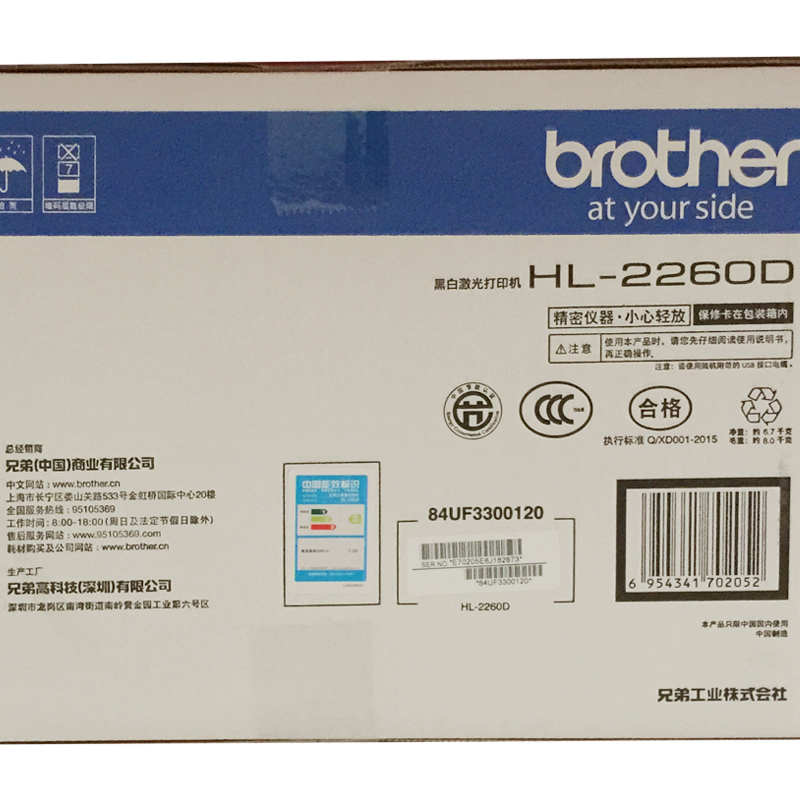 brother 兄弟 HL-2260D 是一款黑白激光打印机 ,具有打印速度快,打印成本低的特点。 在性能方面,这款打印机具有30页每分钟的打印速度,500页一包的纸,不到20分钟就全部搞定。待机情况下,首页输出时间少于8.5秒,足以保障你高效的办公效率。该机还具备自动双面打印功能,降低纸张的使用成本。该机的打印分辨率为600*600dpi,优化后可达1200dpi,满足用户对于画质的要求。 在配置方面,该机配备了250页大容量纸盒,通道式纸道设计,不易卡纸。该机的鼓粉分离式设计,不但节省打印成本,而且保护环境。 此外,该机的打印幅面为A4,外观尺寸为356*360*783mm,产品净重6.7kg。