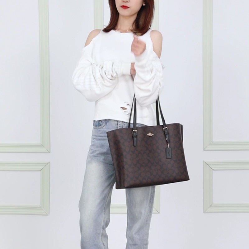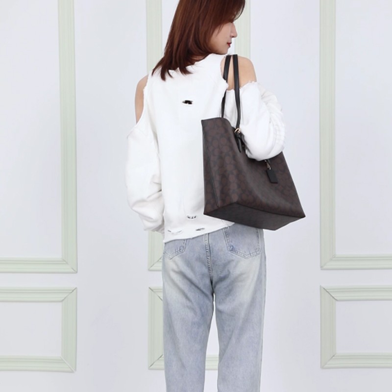 蔻驰(COACH)推出的这款女士托特包,选用PVC材质制作,手感光滑,且易于打理。 包面上饰有花纹,并配以小挂件装饰,复古且大气。配备两根可调节细长肩带,自由选择单肩等背包方式。内部空间大,设有拉链袋,可以存放手机和文件等物品,轻松满足通勤等场合的需求。