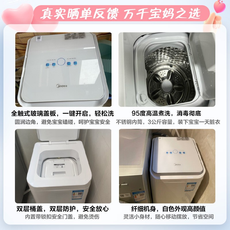 当前的位置: 首页 > 今日值得买 > 美的(Midea)波轮洗衣机全自动 3公斤迷你洗衣机小 儿童洗衣机 婴儿洗衣机 内衣洗衣机 高温煮洗MB30VH10E