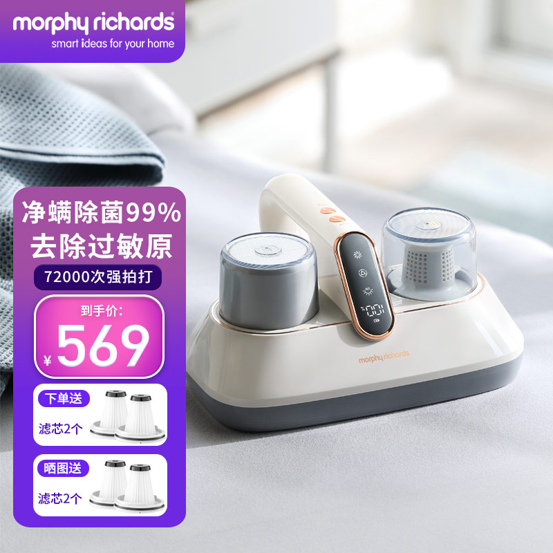摩飞 MR3100 除螨仪采用电动高速螺旋滚刷,置有86组软绒刷头,多触点高频拍打达每分钟72000次,强震降低螨虫附着力,深入缝隙扫螨、拾尘。245nmUV光波穿透,99.99%杀灭致病菌。0泄漏倍安心,拾高或倾斜自动关停照射。内置三芯动力锂离子电池,最高续航力达30min,4小时充满电,随取随用。