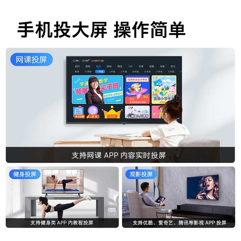 创维智能护眼电视,4K超高清,清晰度提升4倍,10.7亿色彩,64倍的绚彩扑面而来,支持HDR10,暗夜里的细节也肉眼可见,新一代SKY-VISION画质引擎,从清晰度、对比度、色彩、降噪、HDR五大维度对画面进行调优,让色彩绚丽绽放,杜比解码音效,看电影听音乐,临场感更强,手机投大屏,操作简单,护眼无闪屏、光强突变保护、手机语音遥控,好用又好玩,4核64位处理器,轻松实现看片自由。