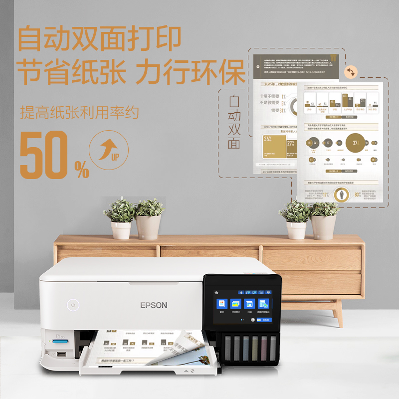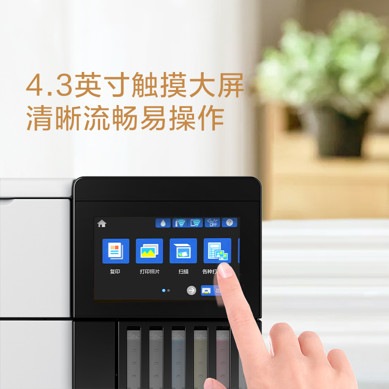 L8168是爱普生全新推出的一款定位高端的影像级喷墨一体机。根据其“影像级”的定位可以看出,这是一款拥有高质量图像印刷的“出色”机型。果然,专业6色墨水+智能墨滴变换技术,轻松实现了高品质影像输出。 首先硬件方面,标准打印分辨率为5760 x 1440dpi (墨滴变换技术)。打印黑色文本(A4):约 16 页/分钟;打印彩色文本(A4):约 12 页/分钟;照片(4 x 6 英寸):15s。颜色表现方面,新增灰色墨水,使得灰阶过渡自然,新增颜料黑墨水,文档打印更犀利。搭载的智能墨滴变化技术,使得打印人像肤色更加细腻自然,暗部表现更精准。 使用方面,差异化灌墨卡口设计,告别错误灌墨,且无需挤压,自动识别灌墨状态。配备4.3英寸触摸大屏,清晰流畅,操作简单。支持无线连接、无线直连,微信小程序等多种方式连接,从此告别数据线的舒服。双路进纸,满足多种打印介质。支持自动双面打印,告别手动翻面,高效便捷。 此外,全新Heat-Free打印头,无需加热,持久耐用,同时打印头3年保修,免去维护烦恼。搭载爱普生智能防堵技术,有效避免灰尘、纸屑吸附,降低打印头被阻塞的风险。同时柔和的曲线与简约的设计。