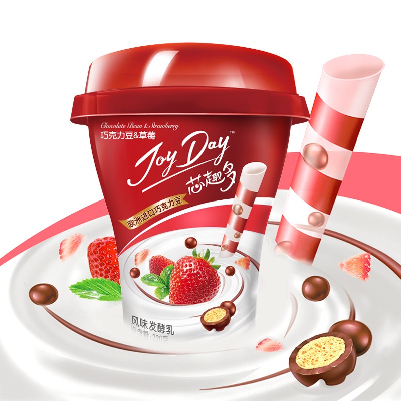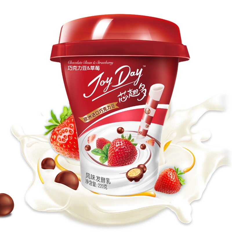 伊利的JoyDay芯趣多吸果杯(巧克力豆&草莓口味),产地:湖北武汉,配料:生牛乳、草莓、巧克力豆、果酱、白砂糖等,多层脆芯巧克力豆、饱满多汁鲜嫩水果。口感丰富,细腻顺滑,可搭配多种吃法,在家玩转多种没事方式。规格:220g*3杯。