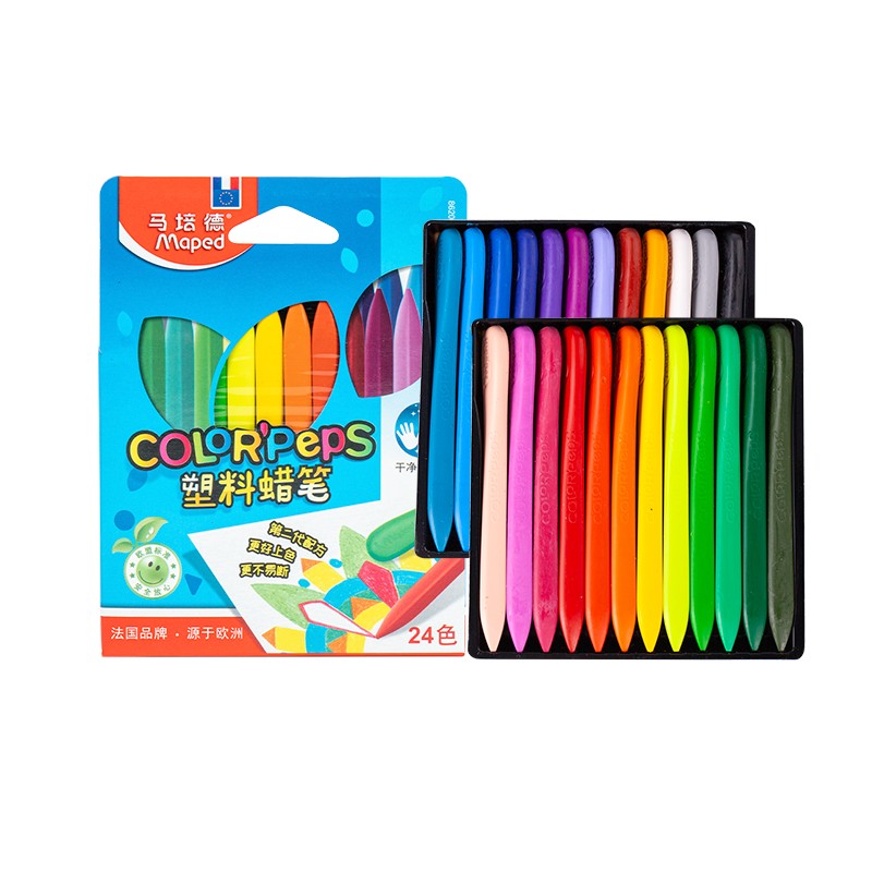 马培德 CH862003 塑料蜡笔 24色 纸盒装,内部为实心构造,双头可用,尖头可以画较细的线条,尾部可以大面积涂抹,颜色丰富,满足一般的作画需求,塑料蜡笔不会像油画蜡笔会粘到手上,画出的颜色整体偏淡,适合在文章中做点小装饰,既可以点缀画面,又不会太抢眼,非常好看喔,买给孩子平时画画也是非常不错的选择呢。
