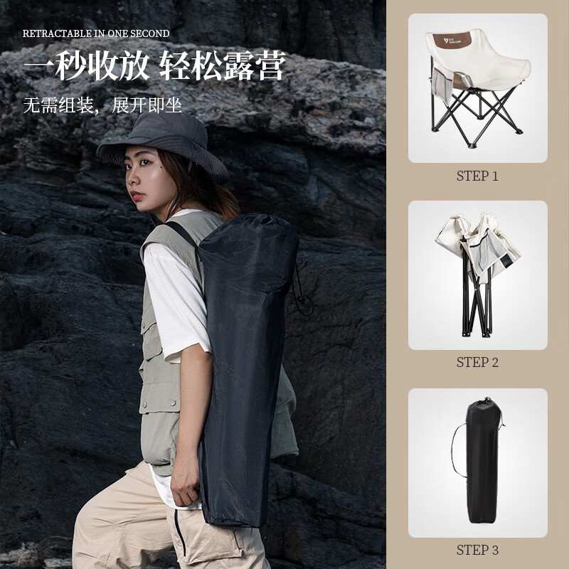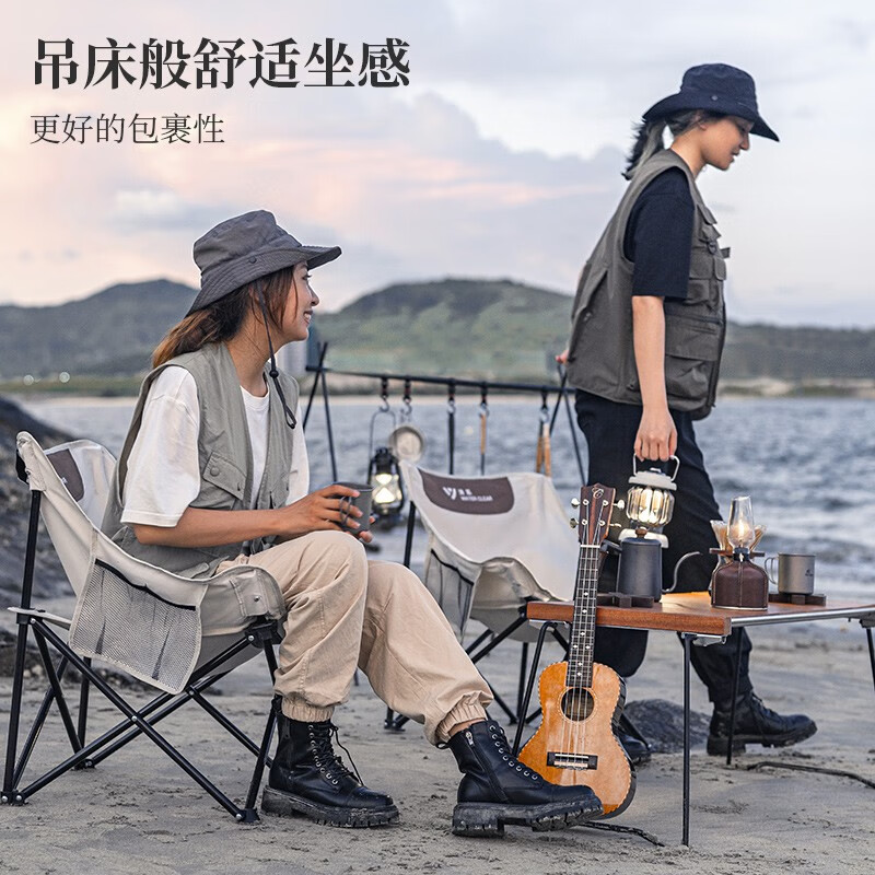 WATER CLEAR 清系 户外折叠月亮椅 米白,无需组装,展开即坐,承重200斤,轻便易携带,吊床般包裹,久坐不累。