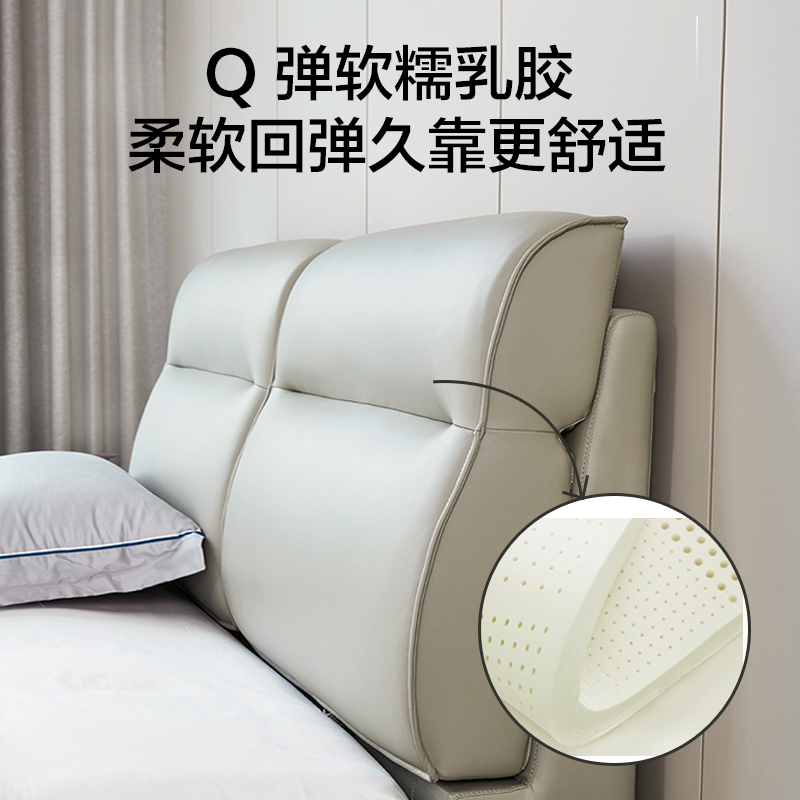 云感乳胶靠包,乳胶+高密度海绵复合填充,回弹性佳,不易变形,双层靠包舒适加倍。