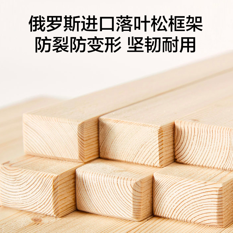 俄罗斯进口落叶松框架,坚韧耐用,经高温蒸熏、烘干、抛光等多道工序处理,防裂防变形。