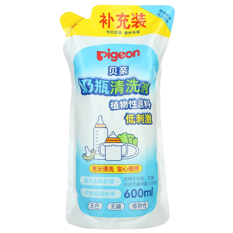 Pigeon/贝亲 奶瓶清洗剂,蕴含植物的清洗成份和食品中也使用的成份,能安心用于奶瓶、奶嘴、小玩具等婴幼儿入口之物的清洗。 有效清洗奶渍、唾液等婴幼儿特有的污垢,去泡快速,漂洗容易。 弱酸性配方,对哺乳器具,小玩具等婴幼儿入口之物无影响,温和不伤手。 规格:700ml