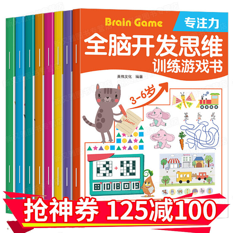 【系列自选】全脑开发思维训练书全8册 数学思维训练全8册 图画捉迷藏儿童图书童书益智亲子游戏全脑思维逻辑走迷宫找不同书籍儿童3到6—7岁专注力记忆观察力训练4到5岁连线 全脑开发思维训练游戏书全8册【