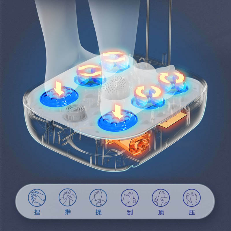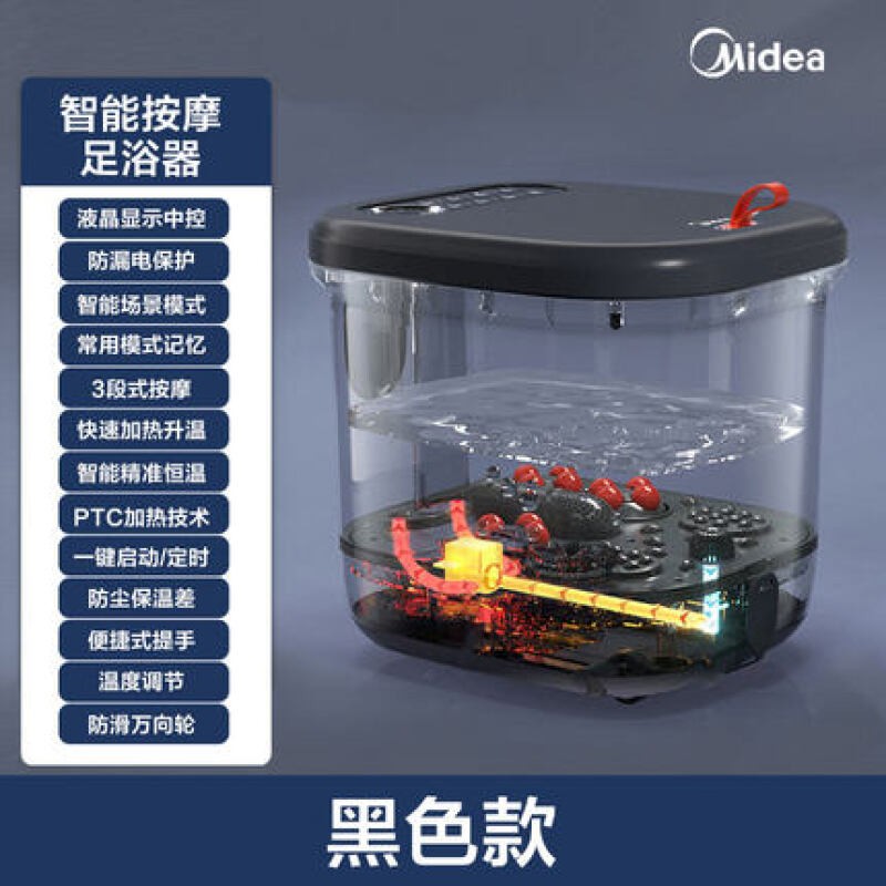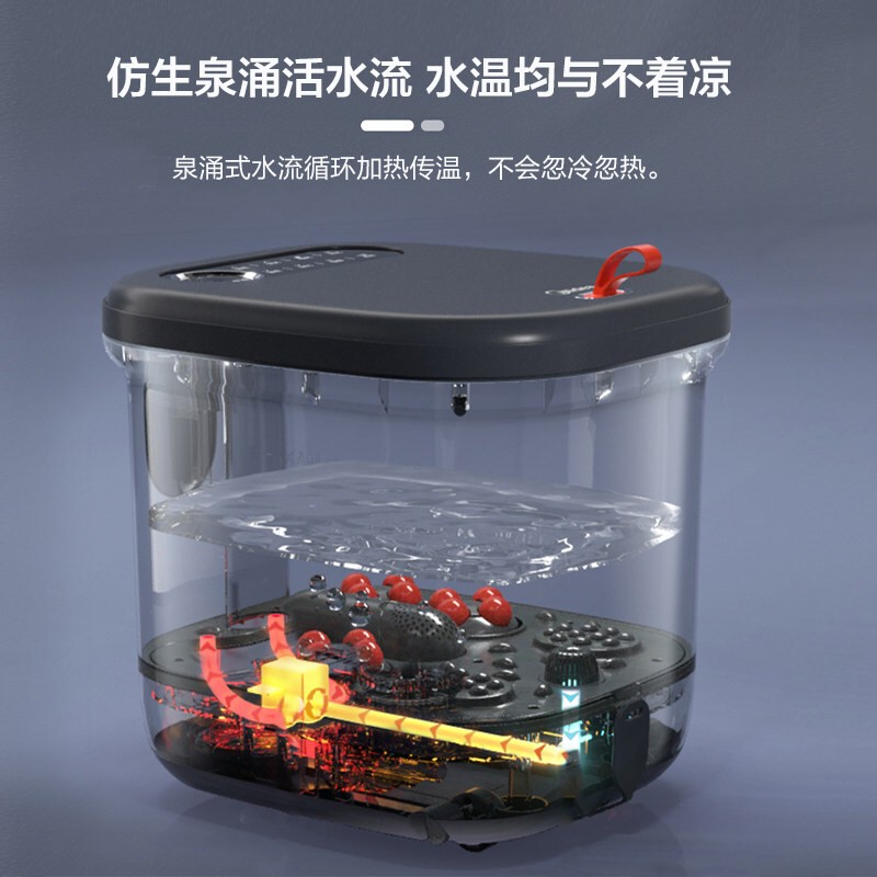 3D按摩轮 全脚掌按摩 防漏电保护 智能场景模式 自动记忆 智能温控 PTC速热 泉涌恒温 大屏显温。复刻中式传统6大技法 精准揉按足底60余个穴位。水电分离技术 电路和水路独立分开 有效阻断电流。加强绝缘层包裹隔离 绝缘保护层包裹PTC加热管 从源头阻隔危险。三大智能模式。35-46℃智能恒温,800W大功率。