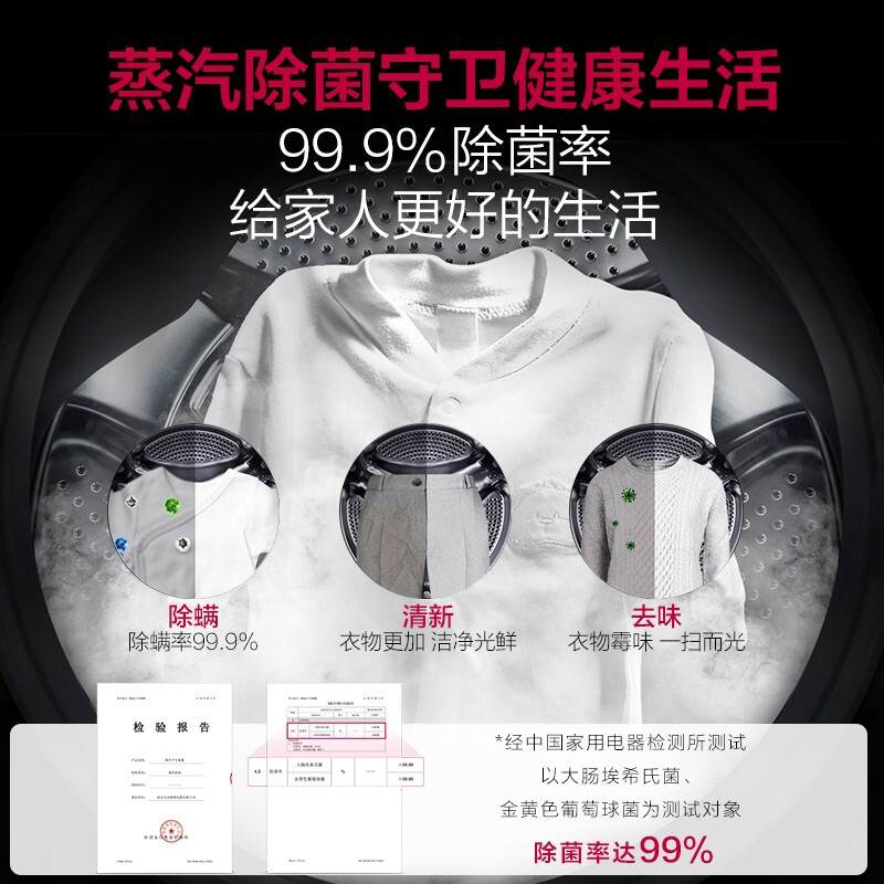 LG这款型号为RC90V9AV6W的烘干机为2021年新品,容量为9kg,采用双变频热泵技术,压缩机双转子同步压缩冷媒,可以有效缩短干衣时间,同时减小运行时的振动与噪音;拥有被褥护理模式,通过空气拍打灰尘,起到深层除菌除螨的效果;配备钢钻玻璃门,支持冷凝器自清洁技术,另外还有双重精密滤网有效去除灰尘和毛屑,门板可以根据摆放位置左右调节,支持手机APP操控。