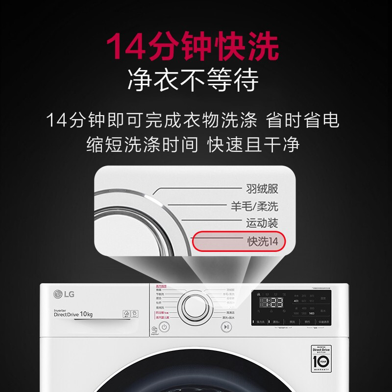 LG FCY10Y4W是2020年推出的纤慧系列新产品,依然主打超薄机身,厚度仅有55cm,更方便紧张的空间码放,采用不锈钢提升器的515mm直径内筒,也与旗下高端机型持平,可达10kg洗涤容量,让小身材也有大容量。内置第五代AI直驱变频电机,可实现对衣料、衣量以及形状的感知,自动实现对洗涤模式的设定,可模拟6种智能仿手洗,洗涤更加高效。特有14分钟快洗、自清洁等实用功能,洗净比1.03。