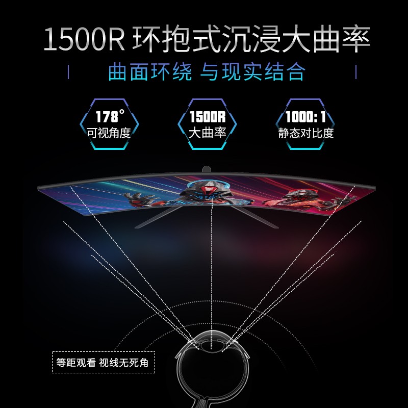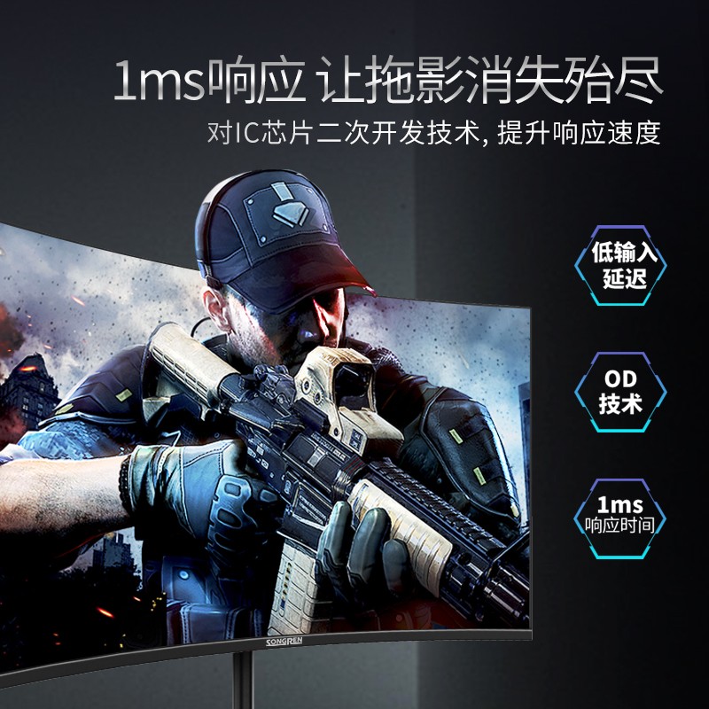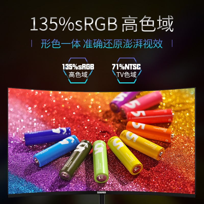 松人 T271Q 这款显示器,MVA曲屏,178广阔视角多个角度观看均无色变,全面提升明暗层次画质更加锐利清晰,2560×1440的分辦率可以呈现更多的画面细,同时打开多个窗口处理更多任务,1800R环抱式沉浸大曲率,165Hz疾速刷新颀滑无阻,1ms响应让拖影消失殆尽,具有轻、薄、窄的外形设计,大幅度缩小了整体边框尺寸,让您体验舒适的画面。