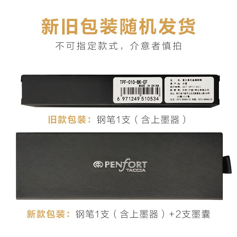 此款新旧包装随机发货,旧款包装含钢笔*1(含上墨器),新款包装:钢笔*1(含上墨器)+2支墨囊。上墨方式为旋转上墨。