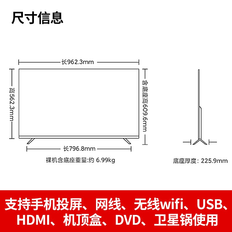小米电视ES43 2022款,采用4K分辨率面板,拥有94% DCI-P3广色域,支持MEMC运动补偿,搭载超级分辨率算法,可以实时分析画面,有效降低噪点,搭载2*10W扬声器,支持杜比、DTS双解码,全面屏设计,拥有97%屏占比,全机身边框+金属底座,支持远场语音控制,内置MIUI for TV 3.0系统,内容覆盖主流视频平台,采用MT9638画质增强新品安,2GB内存+32GB存储空间,支持双频WiFi及蓝牙5.0。