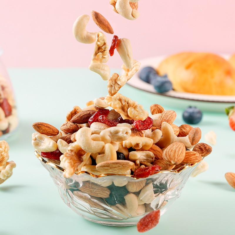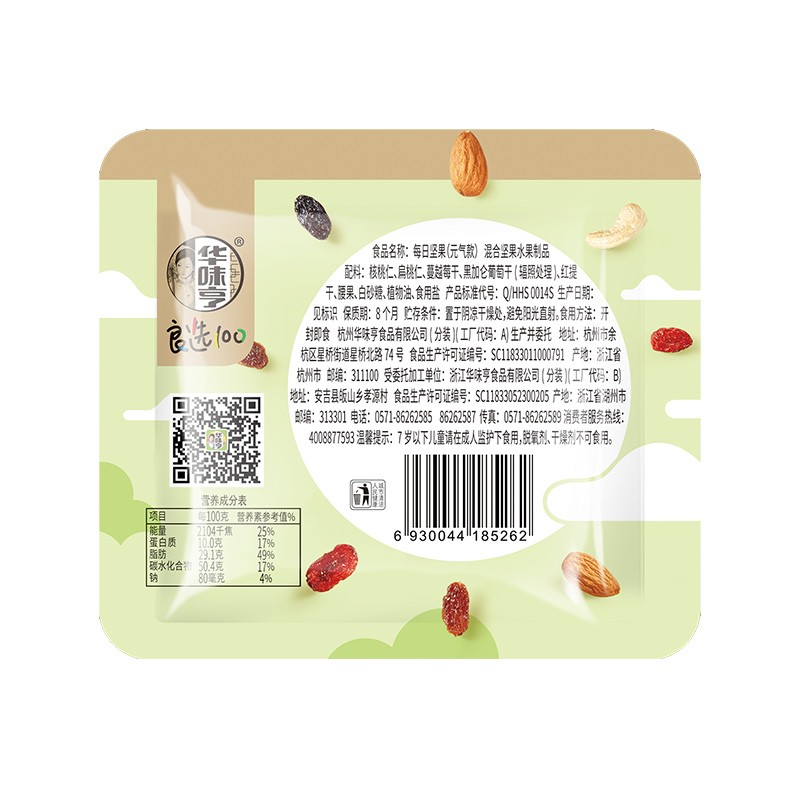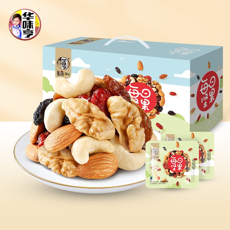 华味亨这款每日坚果筛选全球原产地坚果和果干,包含腰果仁、扁桃仁、核桃仁、玫瑰红提、黑无籽葡萄干、蔓越莓干六种,坚果个头饱满圆润,颗粒大,经过轻微烘焙,味道清香浓郁,水果干口感软感,保留一定水分,让果干的口感更加水润细腻,味道酸甜新鲜,当零食、配早餐、配酸奶、配面包都很合适。复杂的保存工艺,更好的留住坚果和果干的新鲜度,每天一包,好吃有营养。华味亨是中国著名蜜饯行业品牌,创办于1992年。华味亨隶属于杭州华味亨食品有限公司,华味亨是传统加工型蜜饯品牌,在整个干果蜜饯行业有着良好的口碑。