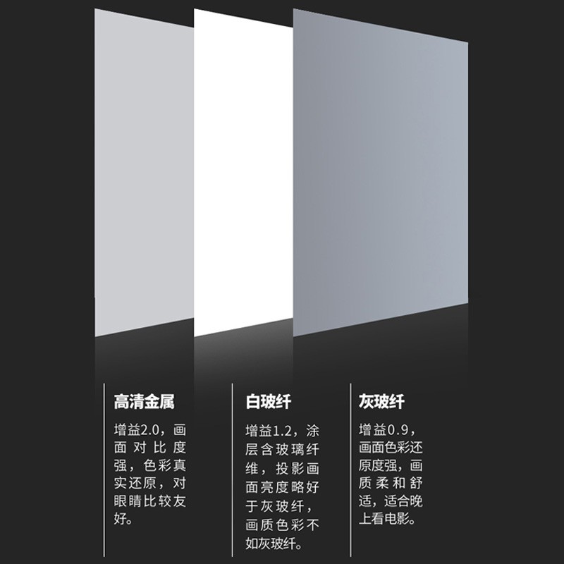 这款是Oley的一款白玻纤幕布,增益1.2,涂层含玻璃纤维,投影画质亮度略好于灰玻纤,画质色彩不如灰玻纤。升级款手动自锁幕采用机器写真打印技术,以技术突破来控制幕面黑白气味,使幕面黑白你更为均匀细腻。这款幕布为16:9,90英寸。