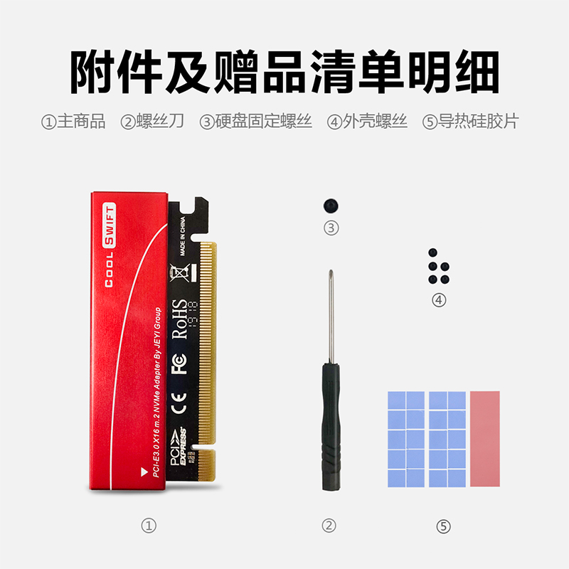 佳翼冷雨燕NVME转接卡M.2转PCIE3.0满速X16扩展卡其实就是在PCIE3.0插槽上,转接M.2 nvme固态硬盘的转接卡。