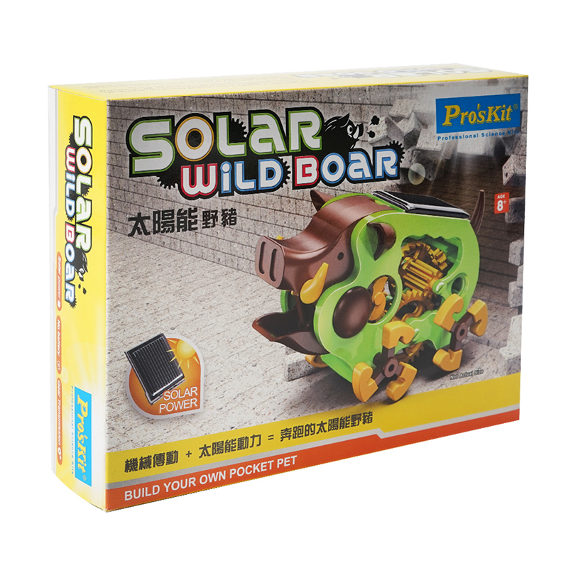 Pro'sKit 宝工是来自台湾的一个品牌,多生产各种机械工具为主,同时也出品一些和机械相关的科学系列玩具。这款太阳能动力野猪,主打DIY动手制作+科学探索为主题,利用简单的拼装就能完成,可以让孩子在趣味的搭建过程中了解简单的机械力学原理,和太阳能电池动作原理,加上萌翻小朋友的外表,兼具趣味性和科学性一体,适合8岁以上的孩子。