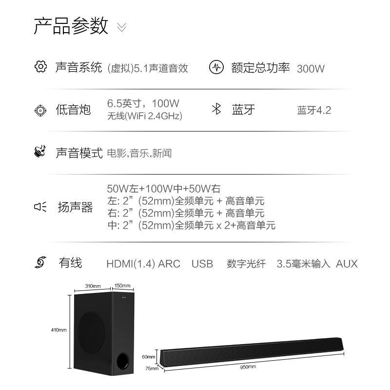 当前的位置: 首页 > 今日值得买 > 飞利浦(PHILIPS)HTL3320 回音壁 电视音响 杜比5.1家庭影院 300W功率蓝牙音箱 无线低音炮套装