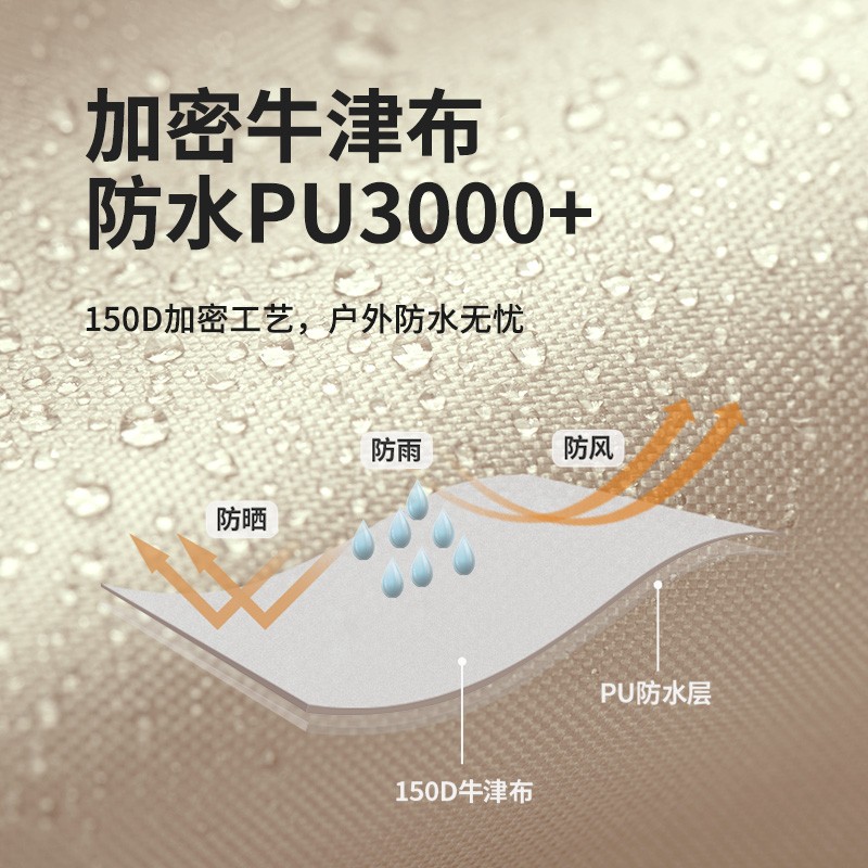 遮阳面积更大,可同时容纳4-6人。150D加密工艺,户外防水无忧。杆壁更厚,更牢固耐用。UPF50+,防紫外线检测。